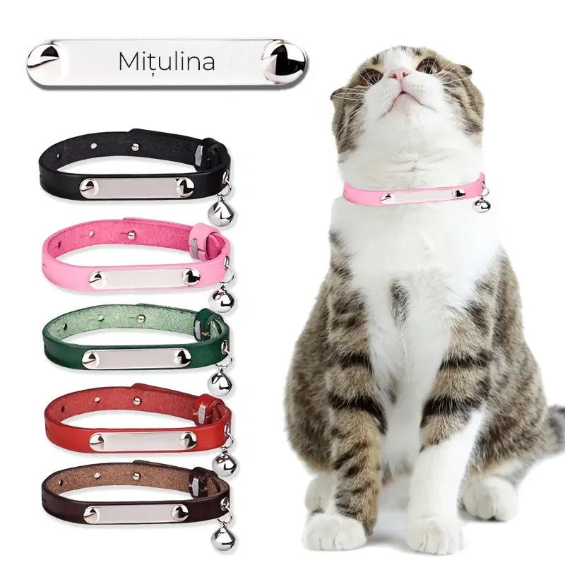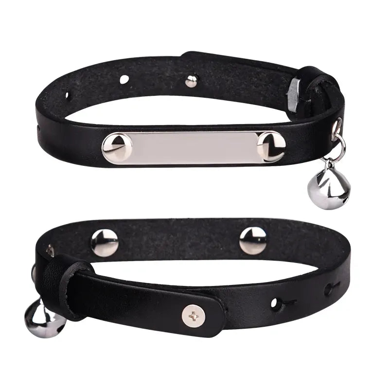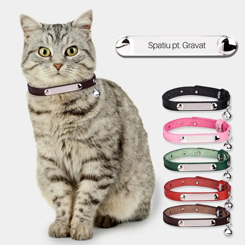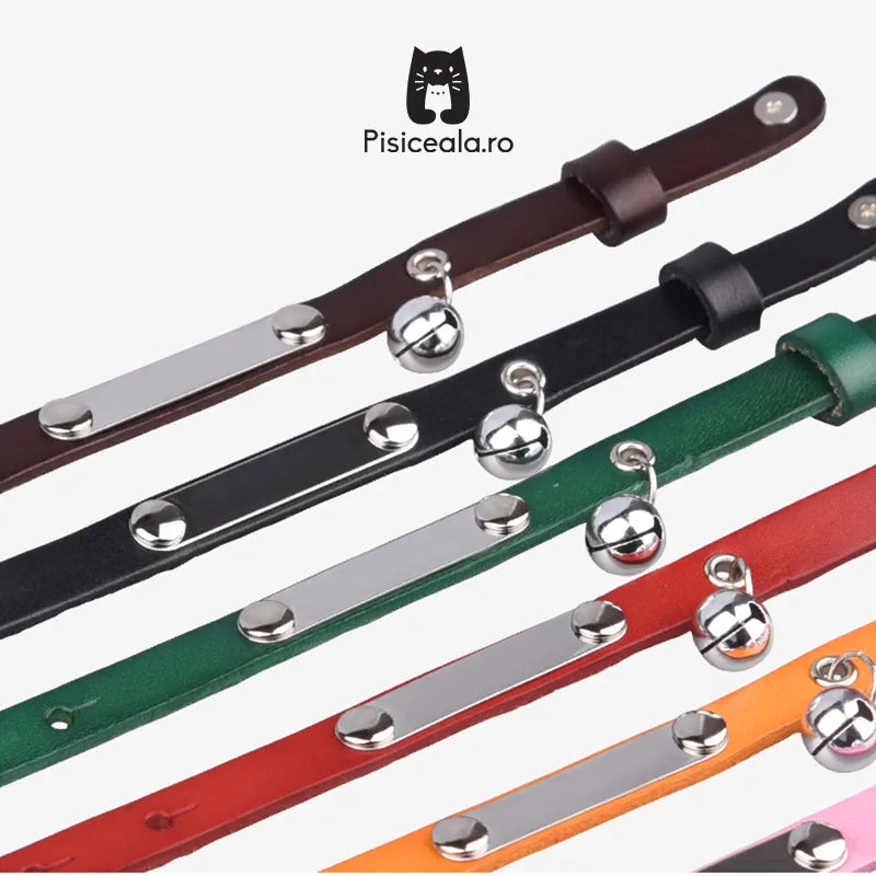 Zgarda Gravabila din Piele cu Clopotel